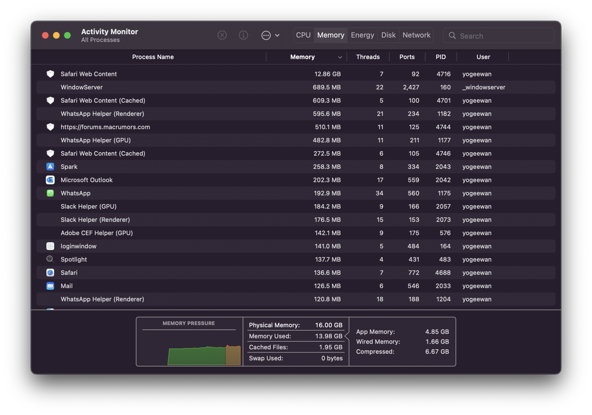Because safari literally eats computer ram? I have been experiencing this since day one with previous versions and still happens as I can read. In my M1 pro 14 with 32gb ram, safari with some tabs opened, can get to 12 or 14 ram total usage. It gets down to 5/6 once I close safari.