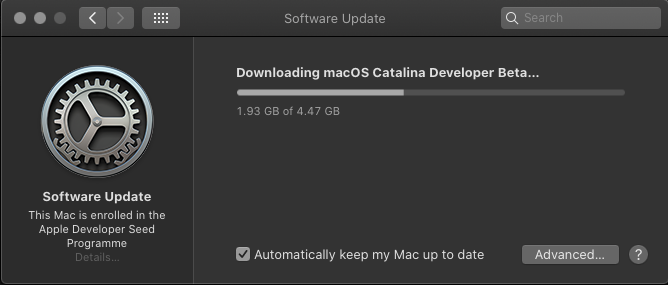 The new macOS Catalina beta can be downloaded using the Software Update mechanism in System Preferences after installing the proper software from the Developer Center.