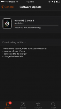 I just installed iOS9 beta 3, downloaded the latest WatchOS profile, installed it, restarted my watch and the WatchOS update doesn't show up.