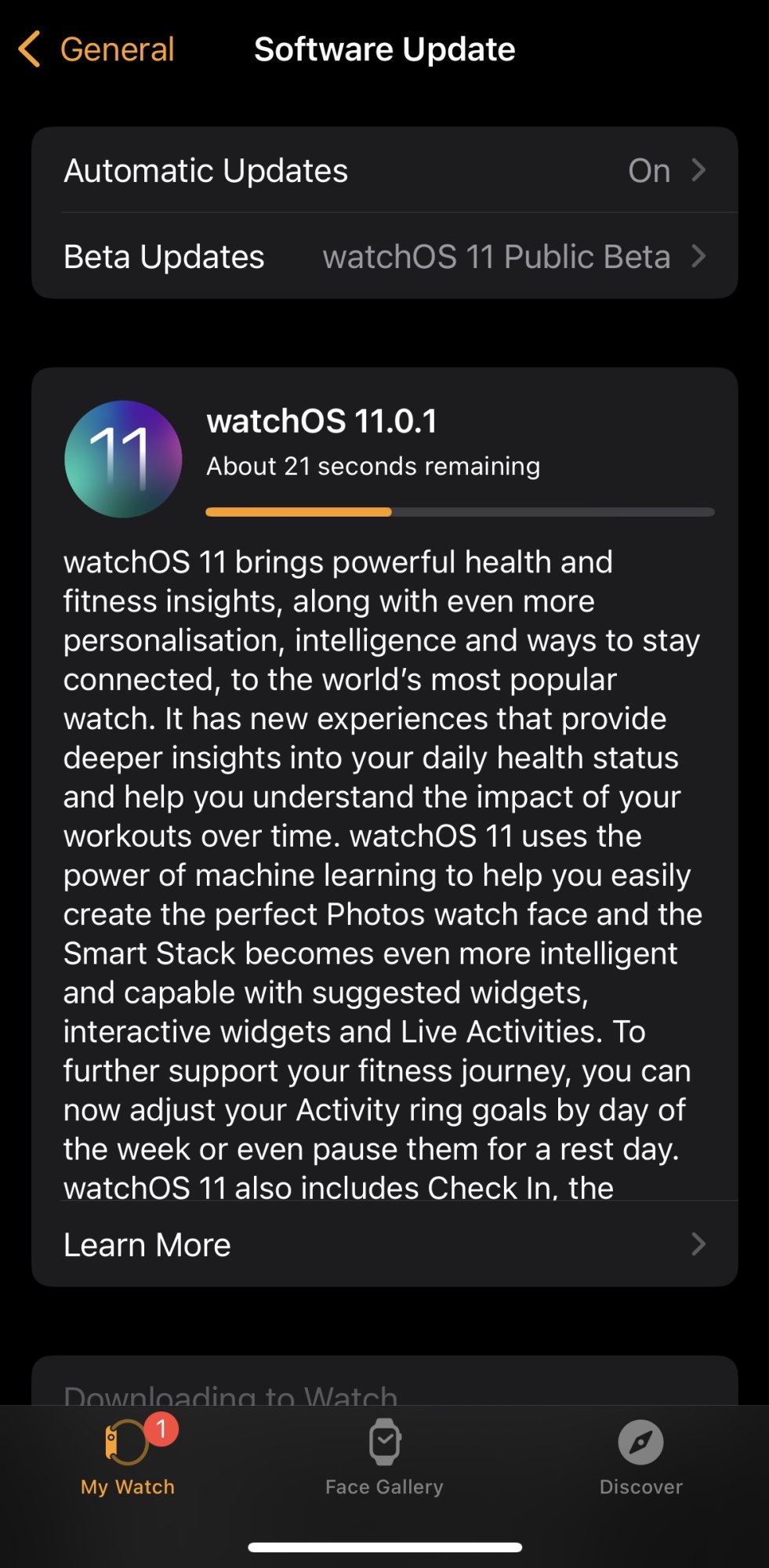 watchOS 11.1 is expected to see a release alongside iOS 18.1 next Monday.
