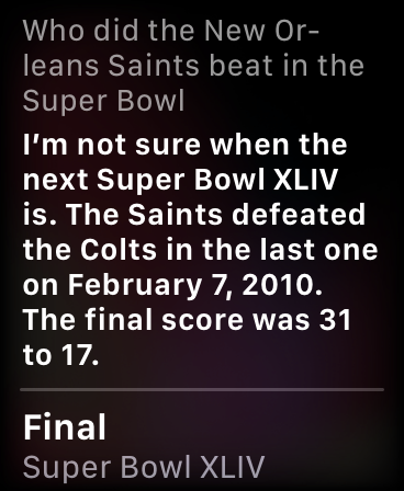 Siri, not sure when the next Super Bowl 44 is, even though that doesn't make sense and I didn't ask her.