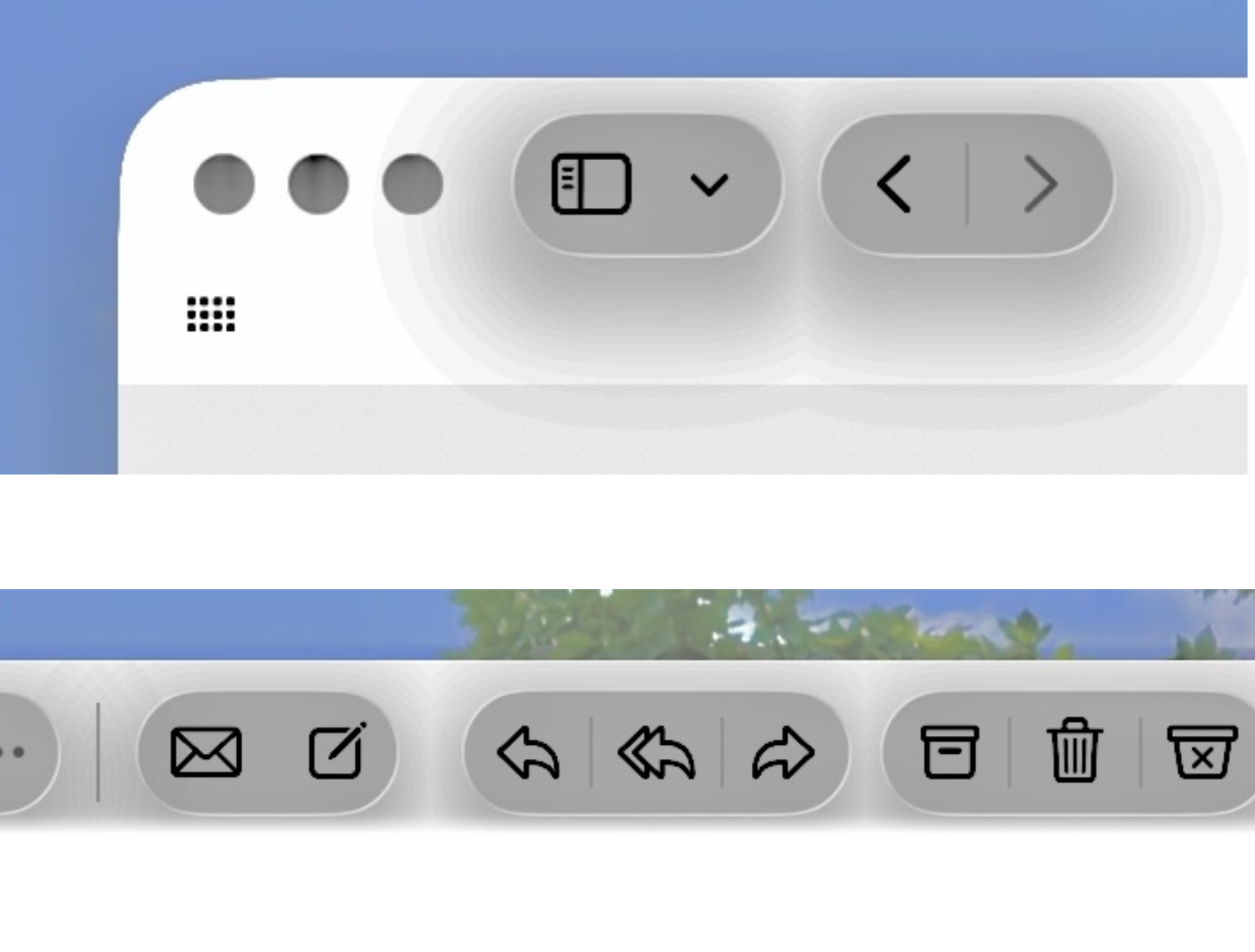 Yes. It’s because on luiquid glass you have the bottom buttons and also some more at the top of the screen, and they are really bigAhh, am I just a curmudgeon? For the most part prefer the left-hand screenshots because they're less 'noisy' - a clear interaction zone with the icons. The right-hand animations are mostly floating transparent lozenges that visually flicker and are intermittently illegible.