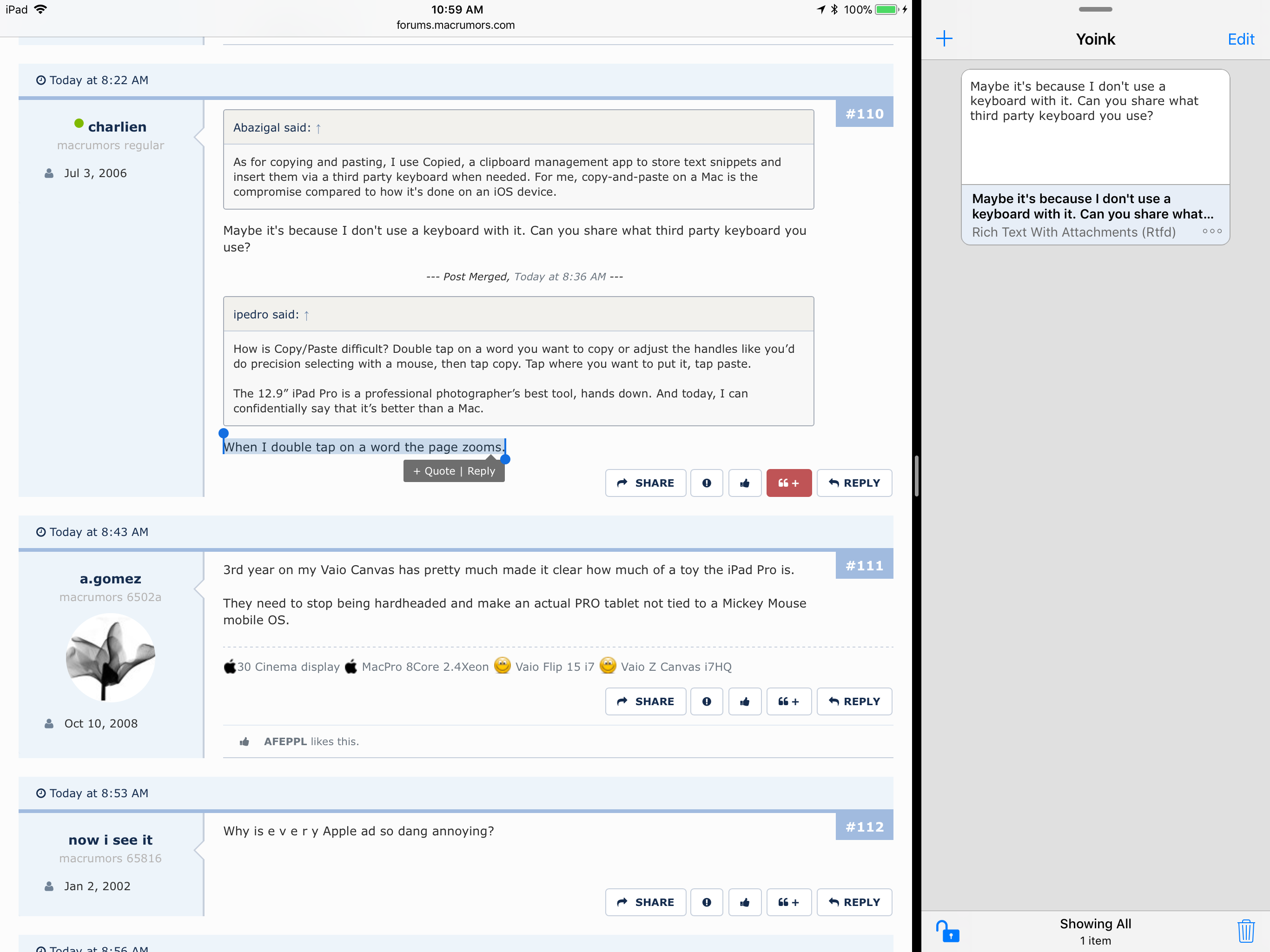 But in discussion forum like MacRumors just use the quote/multi-quote features.