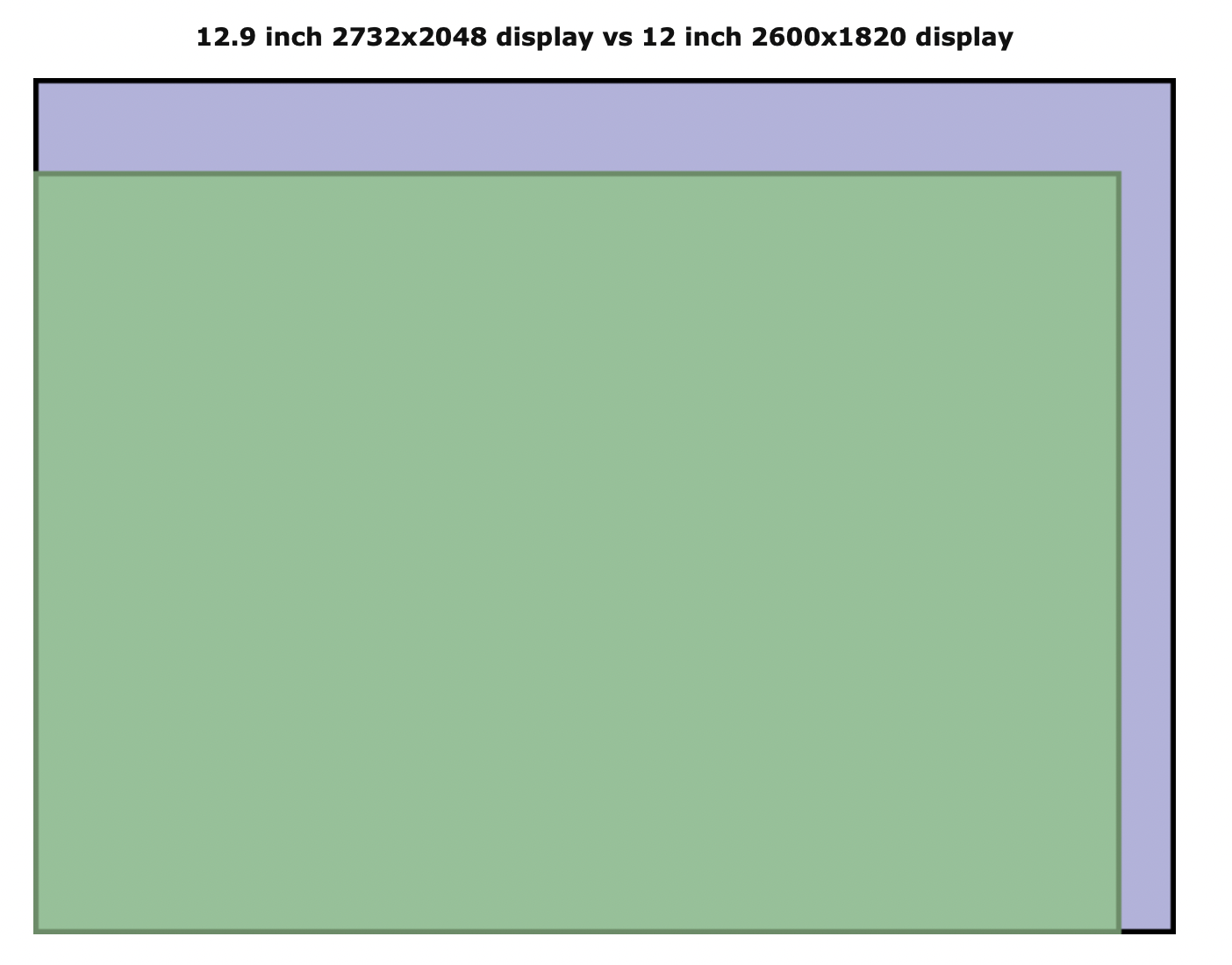 The biggest issue with increasing the size from the 12.9" is that it is already very wide in the portrait orientation due to being 4:3. Standardising the aspect ratio with the smaller model would largely concentrate the increase to the landscape orientation, which I think is more beneficial. It would also align with the rumors that future iPad Pros are going to be more landscape-centric (eg. camera and logo placement). Interestingly, assuming the same size bezels as today, this would have a very similar footprint to the original 12.9" iPad Pro with home button. 12.9" to 14.0" sounds like a bigger jump than 11.0" to 12.0", but due to the aspect ratio change it would actually be a smaller increase in terms of overall footprint.