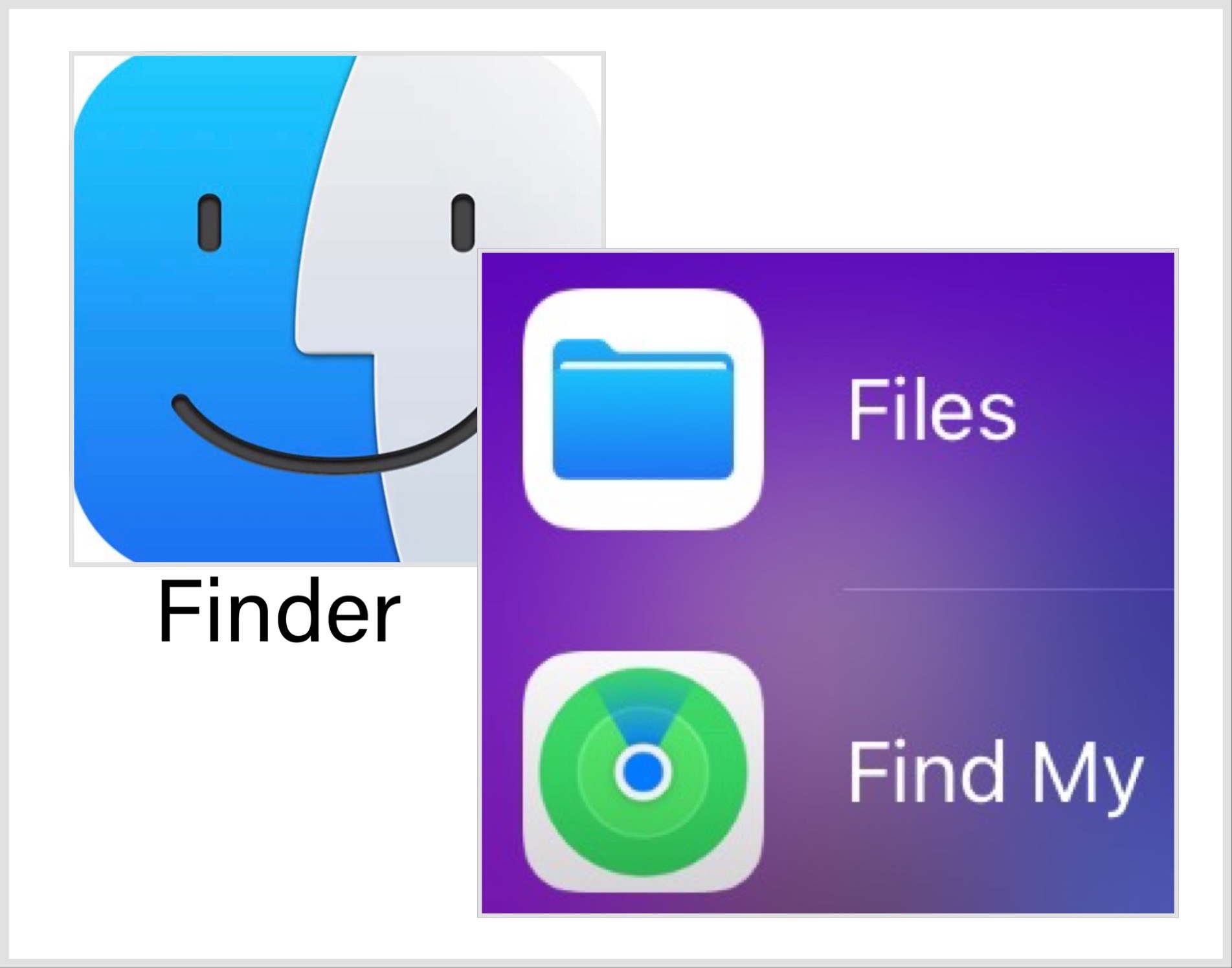 Wouldn’t it be nice if across systems, these apps had consistent names. Files for files and Finder for finding.