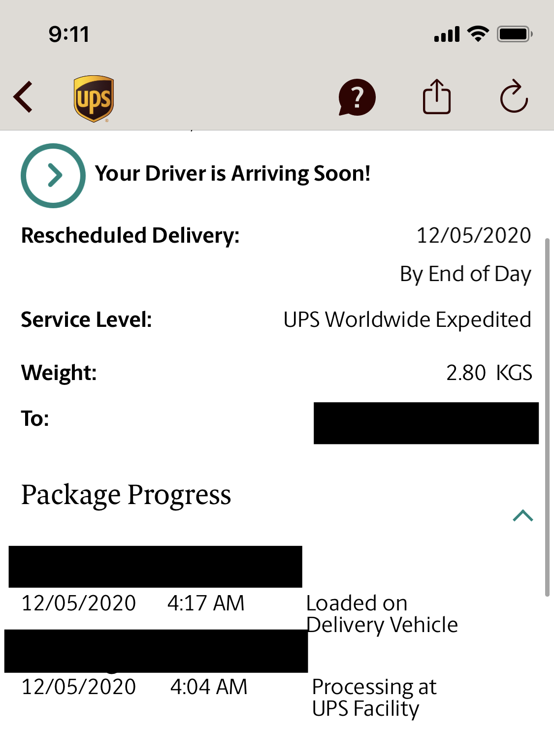 Hmm. It's interesting that you have "Your Driver is Arriving Soon!" where I have "Out for Delivery Today", and your latest update is "Loaded on Delivery Vehicle" where mine is "Out For Delivery Today". Does that mean that mine isn't actuallly on a truck yet, just that it's going to arrive today?View attachment 1687343