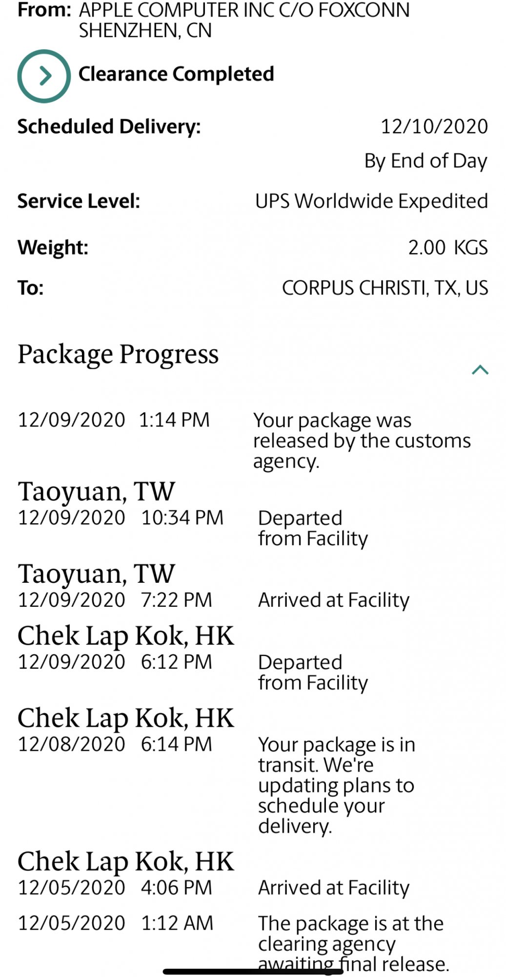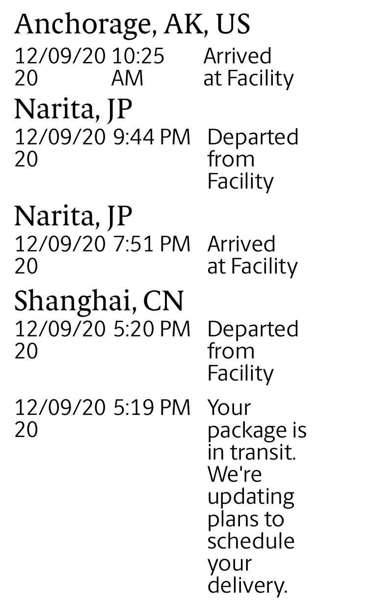It appeared on UPS website on 5 Dec 2020