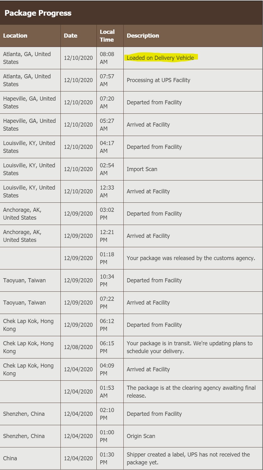Overnight the Apple site says that my order is now "Preparing to Ship" and I have a pending charge as well. No tracking notice/email yet from Apple. UPS MyChoice shows no inbounds...have "Express" shipping...whatever the heck that means or is worth...I’m MBA #1... MBA SG 8/8/16/1tb. Ordered 11/12 with a 11/30-12/7. Contacted Apple last Friday and said would ship this past Saturday and arrive on time on 12/7. Got up this past Saturday and my delivery slipped a month. No charge. No ship. Still “Processing”... Still waiting...