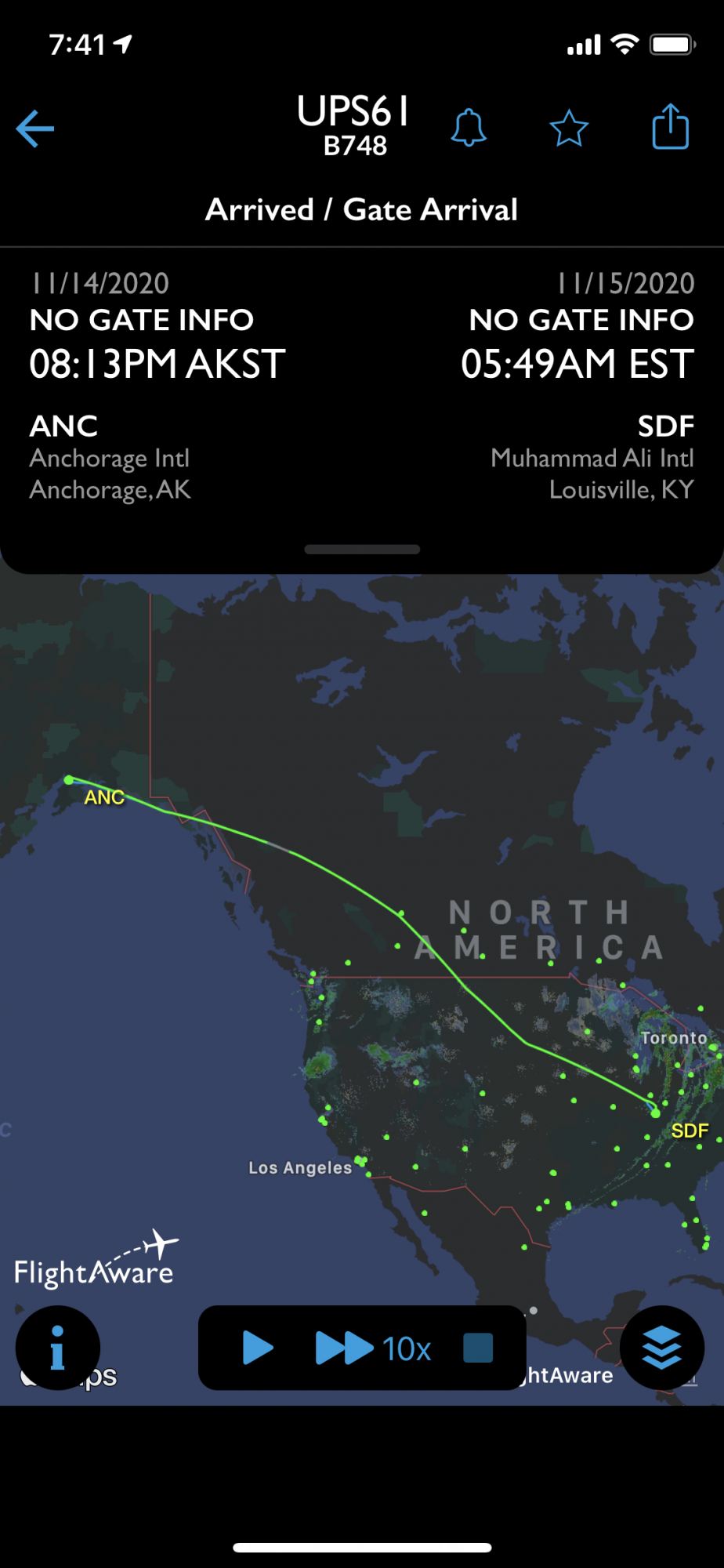 Just realized that my laptop isn’t on this flight because the plane has already landed in Louisville and there hasn’t been an arrival scan yet. Hmmm...My guess as to what flight my package is on? I think it is this one, although the departure time doesn't match up with what UPS' tracking system is showing (8:47pm vs 8:13pm on Flightaware):