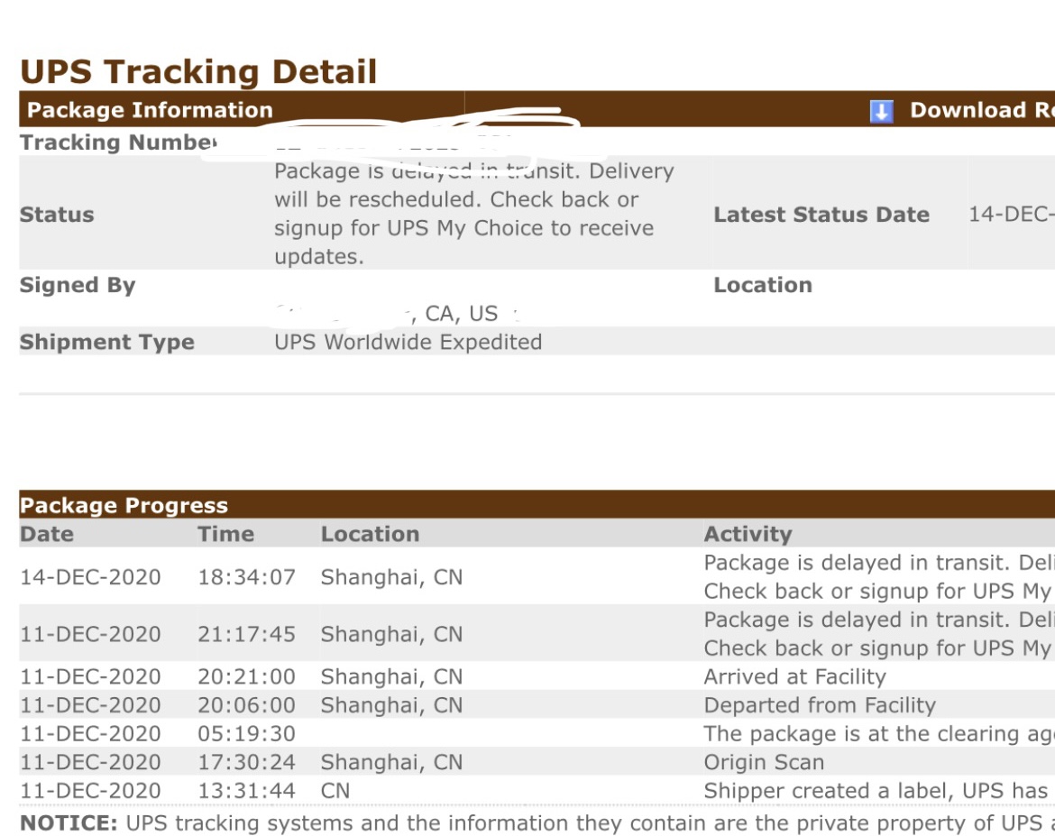 Same I've been stuck on "Package is delayed in transit. Delivery will be rescheduled." since the 10th. This is day number 5 now. Originally scheduled for Dec 24 to Jan 1. Then when it shipped I was pushed forward to Dec 19. Now it's back to Dec 24 to Jan 1.
