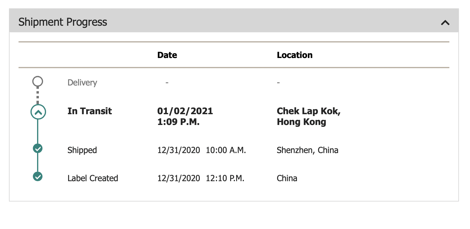 2021-01-01 :: Card charged, and order went from “Processing” to “Preparing to Ship" overnight.