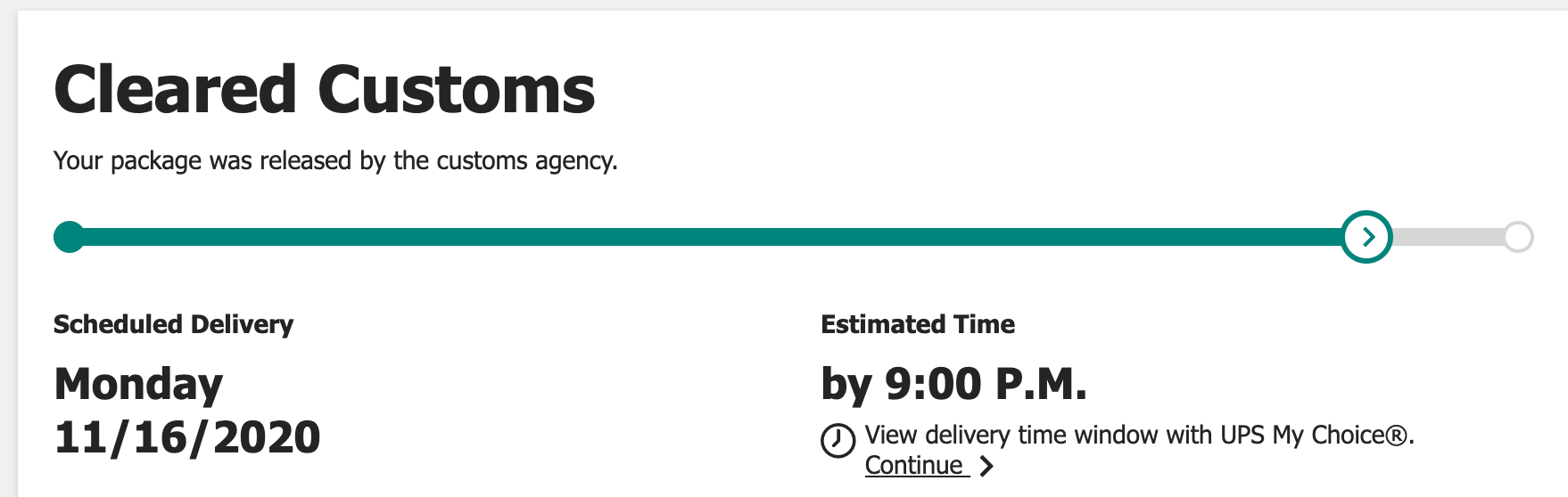 This is where I’m at. It’s not being delivered today. The soonest Apple wants these delivered is tomorrow, I think. I cleared customs on 11/15 but with no new scans I got no hope. UPS does this constantly... they say it’ll be here 2 days sooner while Apple says a day or two later and it usually comes right in the middle... so the 17th.doubt its going to show up today, but this is what the tracking says currently. last location was Alaska.