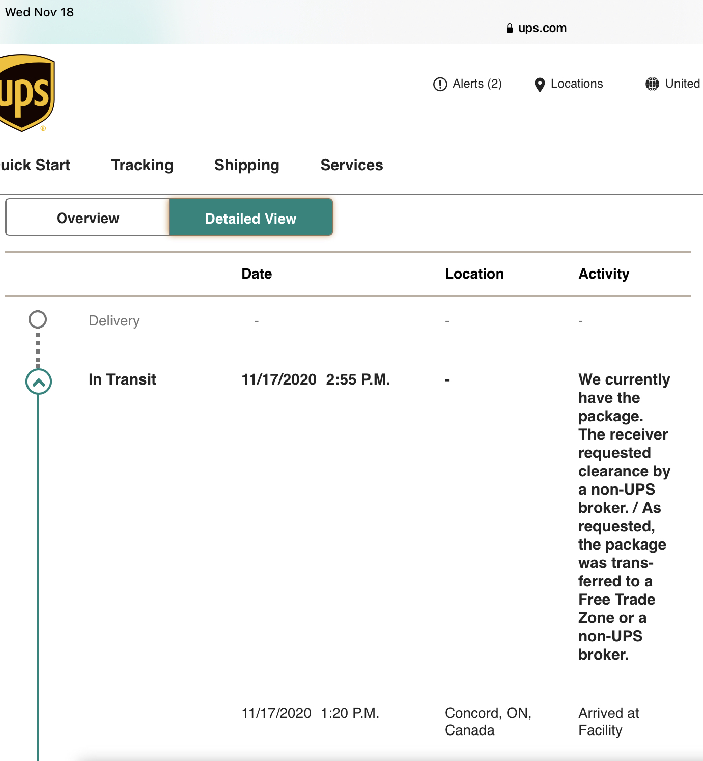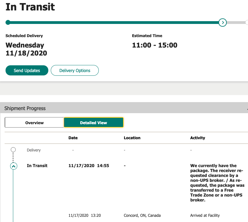 So that's good news. I'm assuming with Thanksgiving next week, the shipping schedule might get a bit whacked.