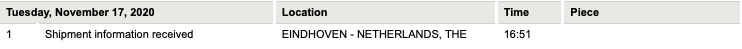 Right not I feel like Apple and DHL has conspired to tease me with my "tracking information received" in EindhovenGoodBut I assume its UPS? Our DHL ones are still stuck there...