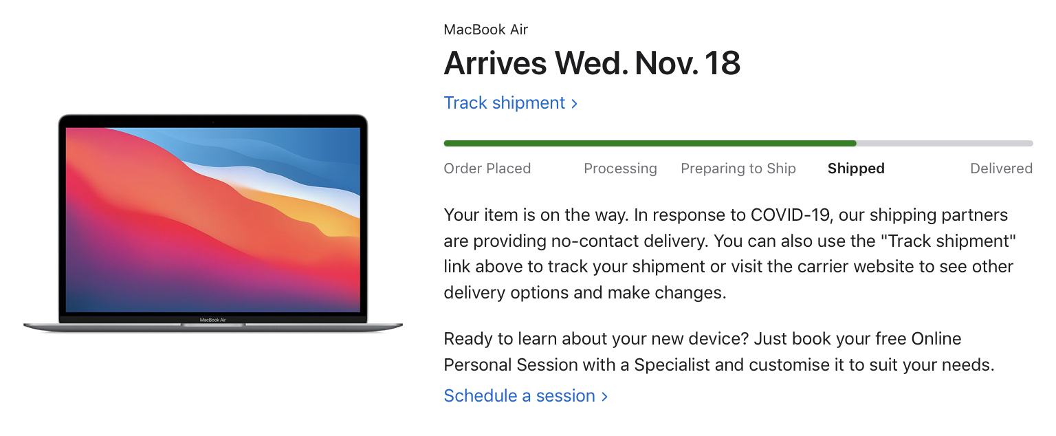 Gold Macbook Air 16GB/512GB arriving 25th November in Germany.