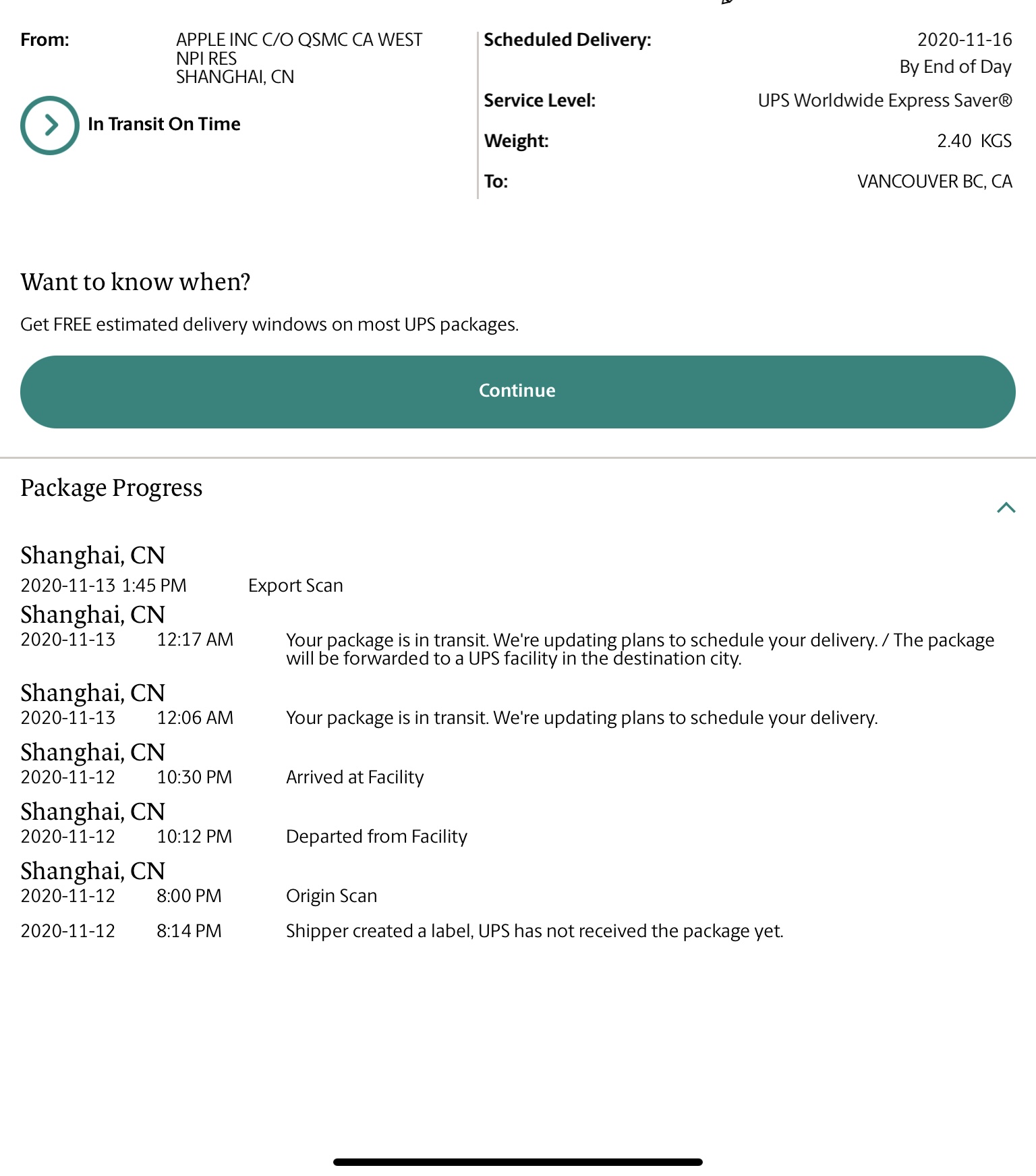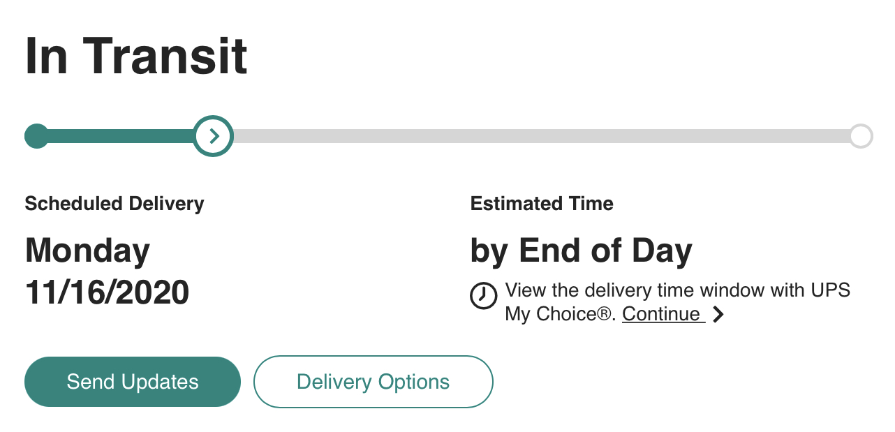 UPS says scheduled delivery on November 16th.