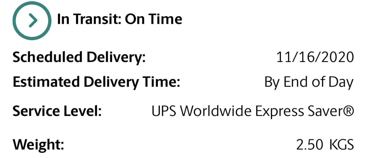 Origin scan just appeared in UPS My Choice with Tuesday 11/17 delivery.