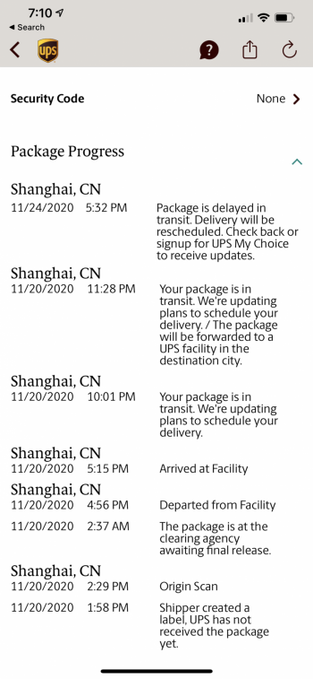 I wonder how yours got to Frankfurt? I can't seem to find any recent UPS flights from either Shanghai to Frankfurt or Tokyo NRT-FRA.Added mine to the list. Just received an update from UPS though; my M1 MBA is (hopefully!) in Frankfurt. No ETA available yet.