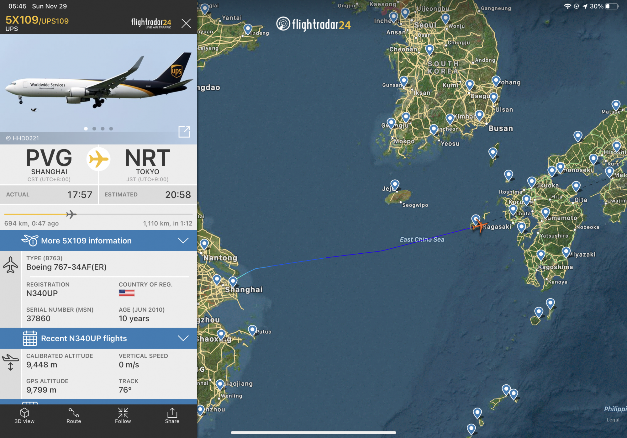 @captchas8 @mooshhie @Gnattu @neworbit99@Gnattu @mooshhie @neworbit99 unfortunately UPS91 has landed in KIX 21 minutes ago and UPS11 is approaching Seoul ICN, and my tracking hasn't been updated. Do you think our packages were on either of those flights (most likely UPS11?)