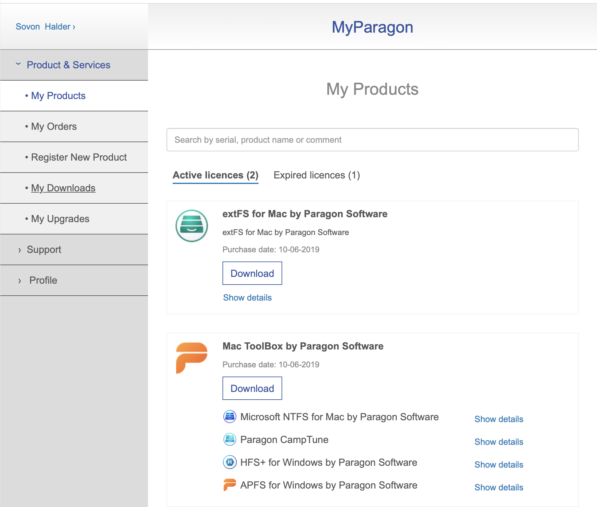 I purchased the entire Paragon suite in 2019. Today I installed the trial NTFS for mac app but I am not able to activate (sign in).