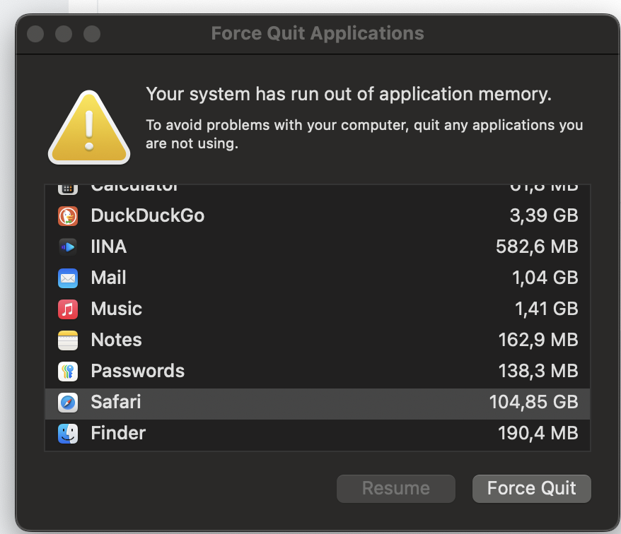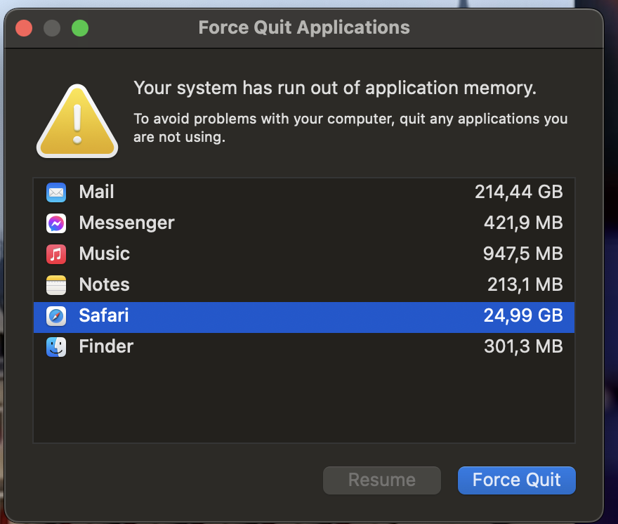 How do you explain just Mail or Safari wanting over 200GB??? I'm not Hollywood movie editor or enterprise-level researcher, I just have bunch of tabs when I'm researching what air fryer to buy and then system runs out of memory 🤷 whyyyy???