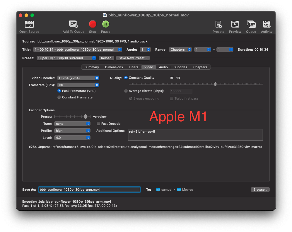 Here is x264 super hq preset run with rosetta vs running native arm.