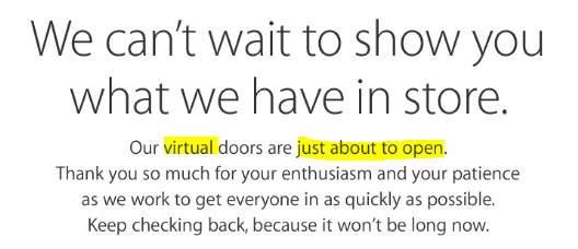 One day they'll upgrade their e-commerce systems so that they don't need to take the store offline for several hours when making changes, and we won't have this excitement leading up to a keynote...