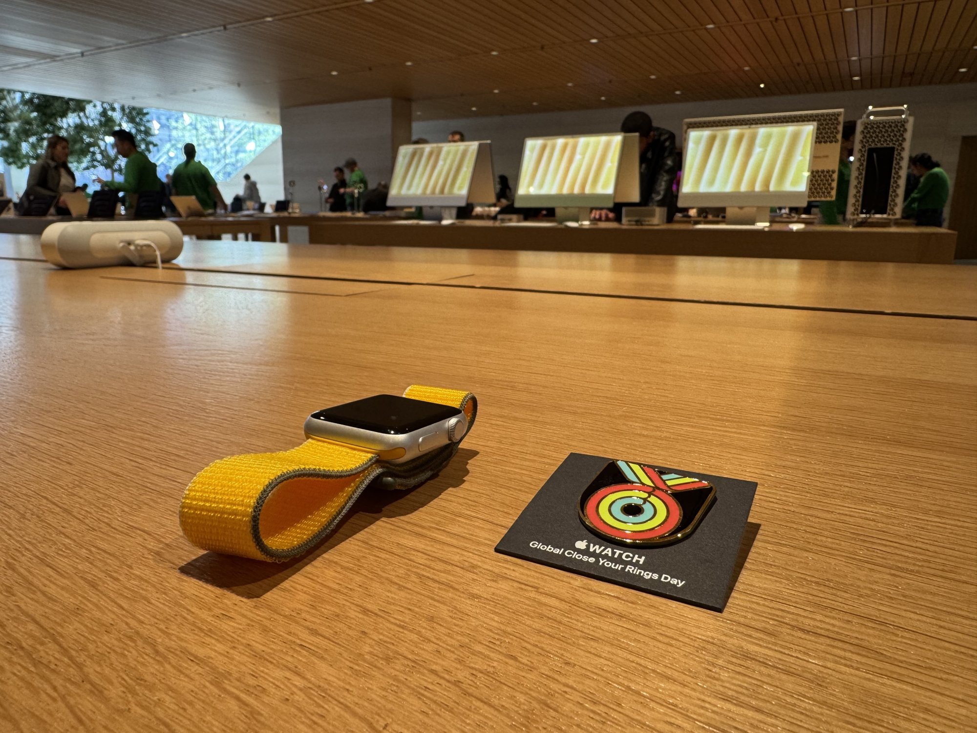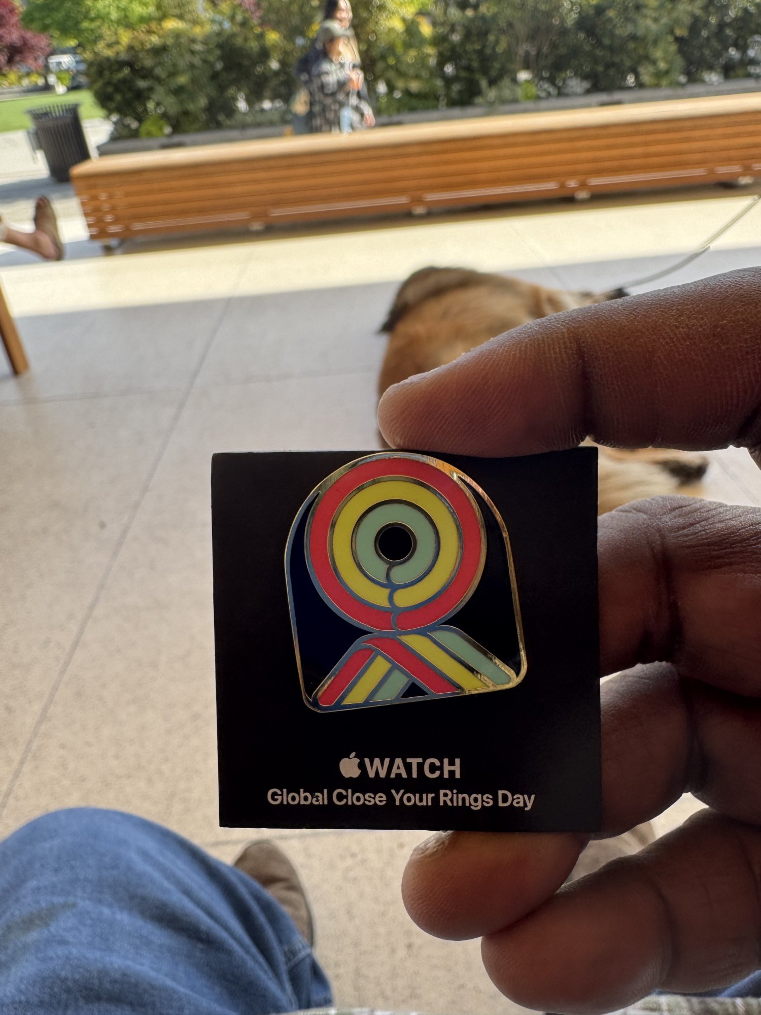 They did special fitness+ challenges with prizes just for those too?This year we got the special anniversary bands that @mikedis posted and water bottles. Those who also participated in the Apple Fitness+ challenges received custom made anniversary workout mats and this pin is the last one with some events taking place at Apple Park as wellIn the Bay Area the pins were gone by 11am. There was a big queue at Apple Park Visitor Center as early as 1 hour before opening with people waiting for the pins 😂