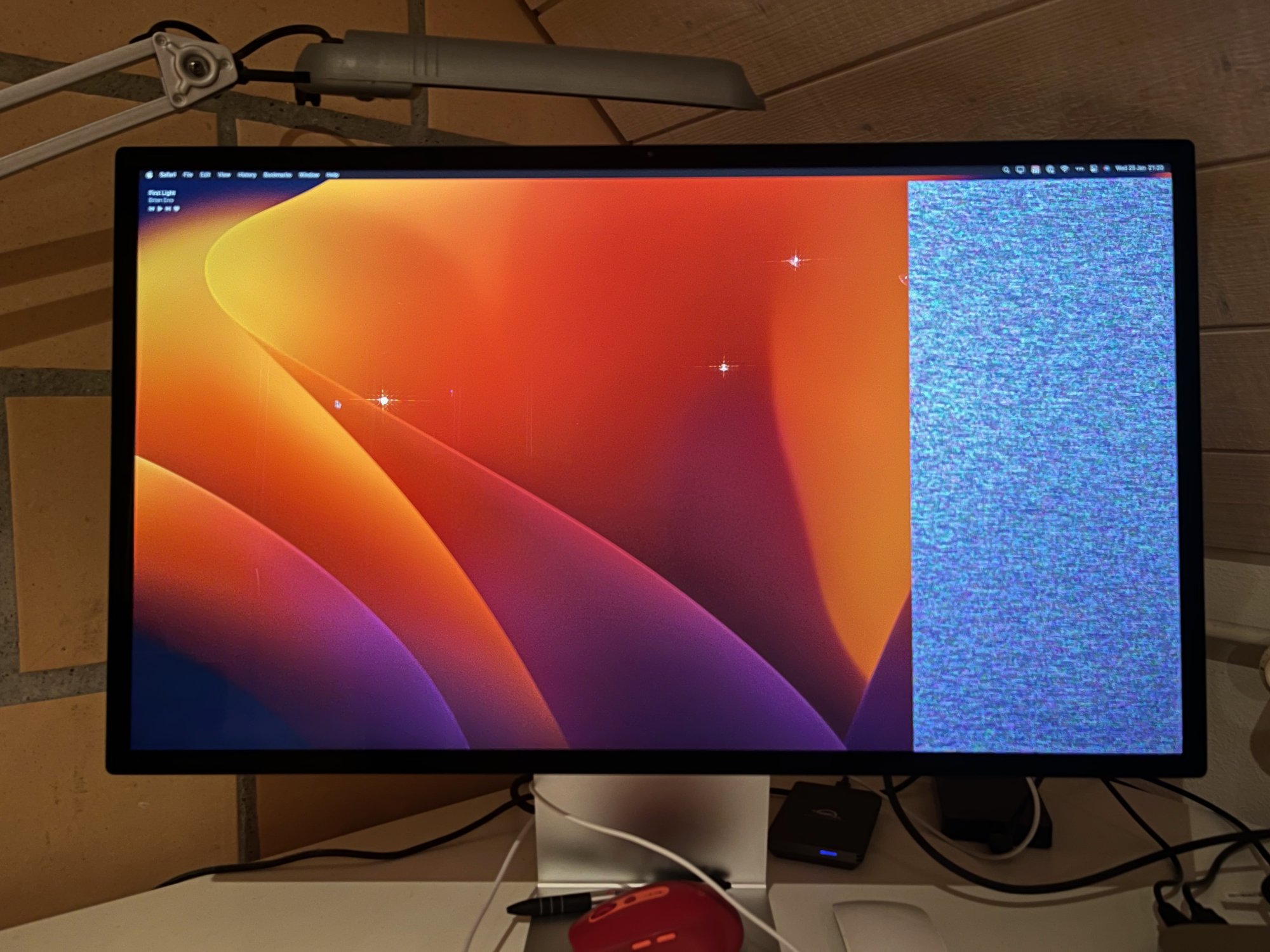Definitely weird - I've had mine for months and have never seen anything like that. (Or any glitch for that matter).I experienced a glitch yesterday. The ASD was flickering extremely fast and the right part of the screen showed a band of static. This was while the M1 Mac mini was inactive and I was away from the screen (in screensaver mode). After a few reboots and unplugging the Thunderbolt 4 cable (supplied by Apple with the ASD) the problem has not occurred again. Do you think it is due to a faulty cable connection? Both devices have the latest software. (the photo is a still of the flickering screen. I should have filmed it)