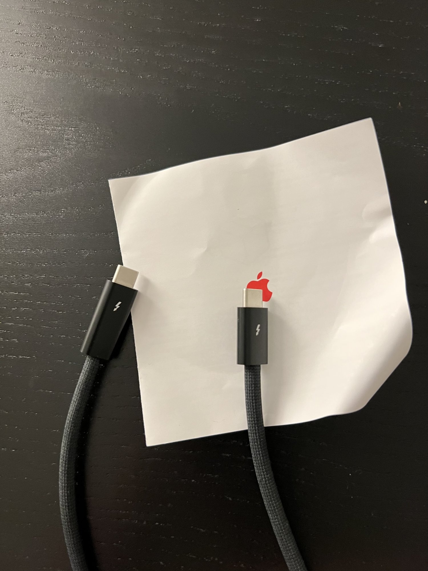 This is interesting. I wonder if they modified the design? Or maybe it's just for some reason the Studio Display comes with a unique cable and they just sent you the one from the Apple Store... Mine looks like the left for what it's worth.I just received my replacement Thunderbolt 4 Pro cable from Apple Support (right) - why does the replacement cable physically look different than the original included cable with the ASD (left)?