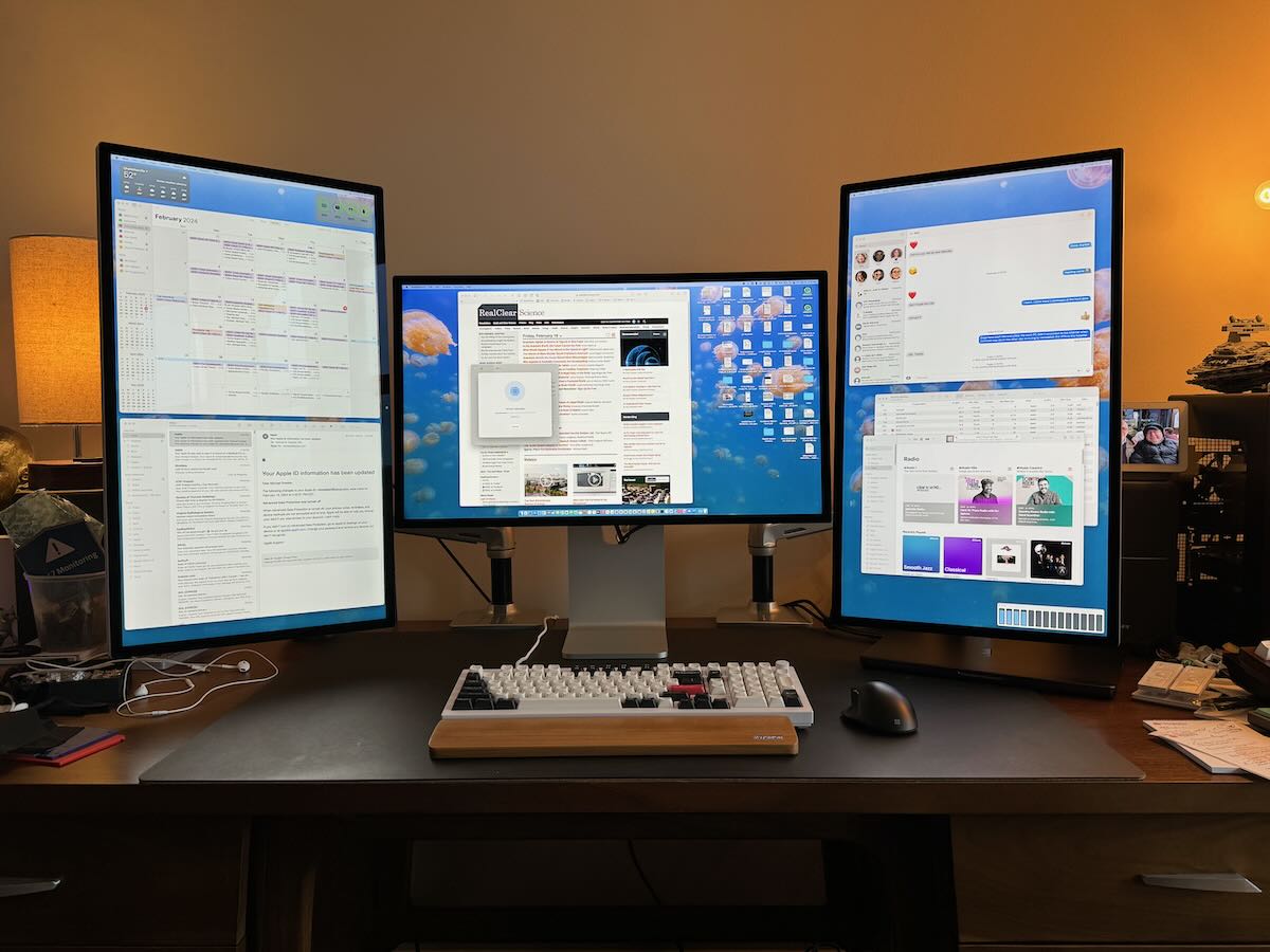 Yeah, I have had multiple monitors more or less continuously since the late 90s, it worked great on Linux, classic Mac OS and even early Mac OS X, so it isn’t a matter of getting used to it.So on my personal Mac, it just feels "normal" for me to have multiple displays.