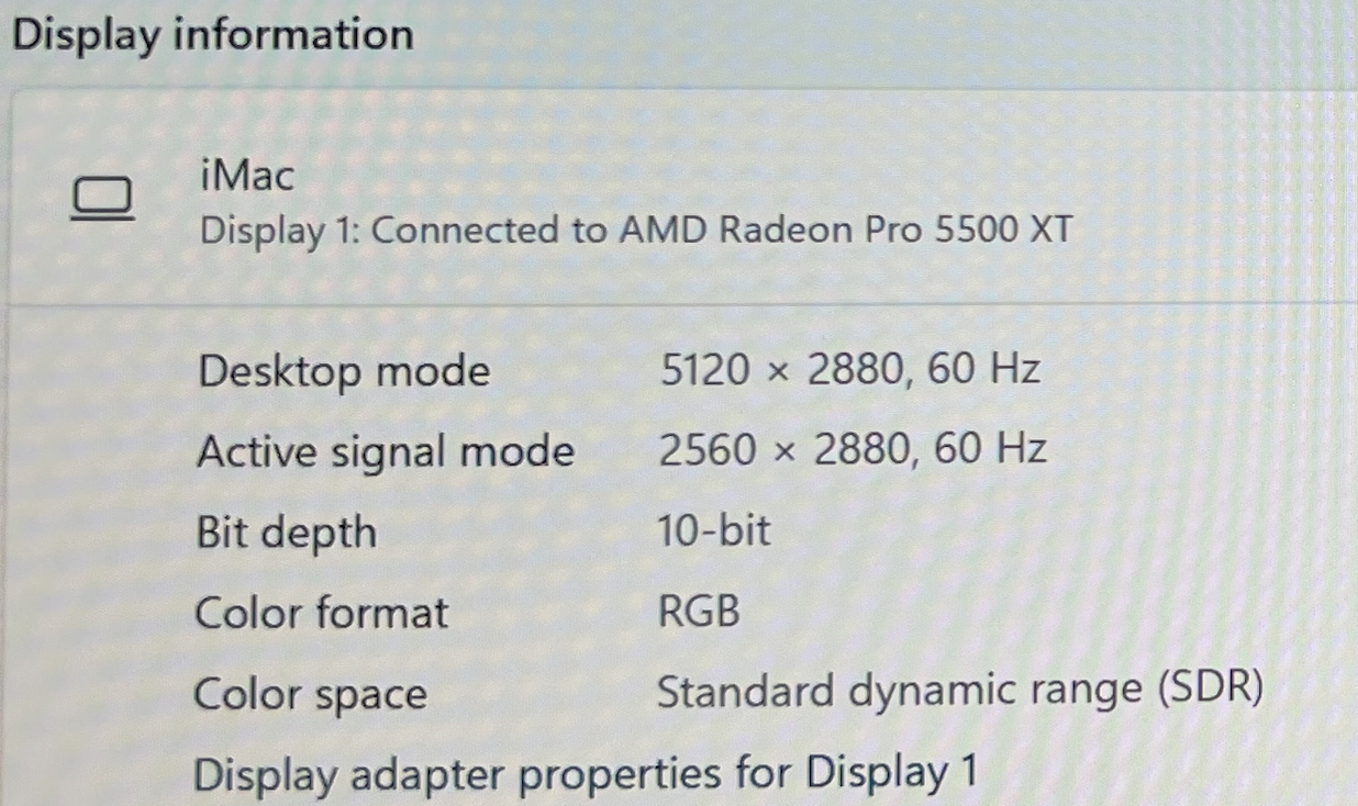 The Intel UHD Graphics Control Panel seems to work for me. Others have said it hasn’t worked for them.From what I understand, the solution to controlling the brightness (using Windows) on either ASD or Pro Display XDR is to use the Belkin/Huawei VR cable, which has USB connectors that will tunnel through the USB-C cable you can use with the Apple display. You'd need Apple's Bootcamp drivers in order to adjust the brightness in Windows.