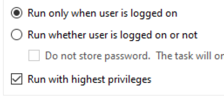 3) In the main config, MAKE SURE RUN WITH HIGHESTPRIVILEGES is checked ON