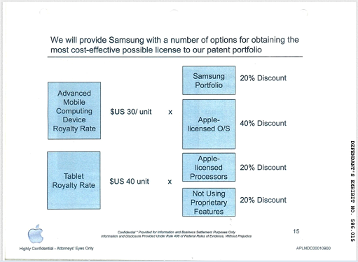 Actually, back before the trials, Apple offered to license its IP to Samsung... for ridiculously high amounts of $30 per phone or $40 per tablet... for patents like slide-to-unlock which have since been invalidated or no longer used. And now Apple complains about a few dollars per device for patents which actually make a phone useful as a phone.