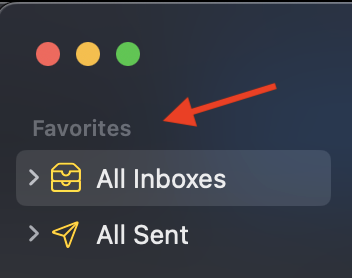 so you're not seeing this upper right? because it defaults there, and these folders are just aliases for the folders on your mac...No favorites...why would one have a favorite email account(s)? I might just do that as it's highly upsetting, enough for me to come here and gripe...thanks for the pointer...