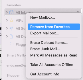 Thanks for chiming in...my point is: I didn't create any favorites...I merely import from another Mac via migration which had just mailboxes, send, flagged, junk, and trash. So, I deleted that and recreate accounts again (that turned into a headache) downloading 23,000 email from 2016. Then., the repeated asking for password every couple of weeks despite only myself can log in via biometric. What's the sense of the Internet account in the system and the finger ID then?I think you just don't understand what you're looking at.