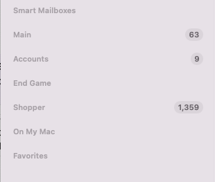 Okay, this screen shot could explain: all mailboxes (when the drop down arrow selected) appear again where the second purple arrow as mailboxes on "my mac." This is an unnecessary duplication and could be confusing as well as uncool.Can you send a blurred out screenshot of what you’re seeing? I think that would help us solve your issue.