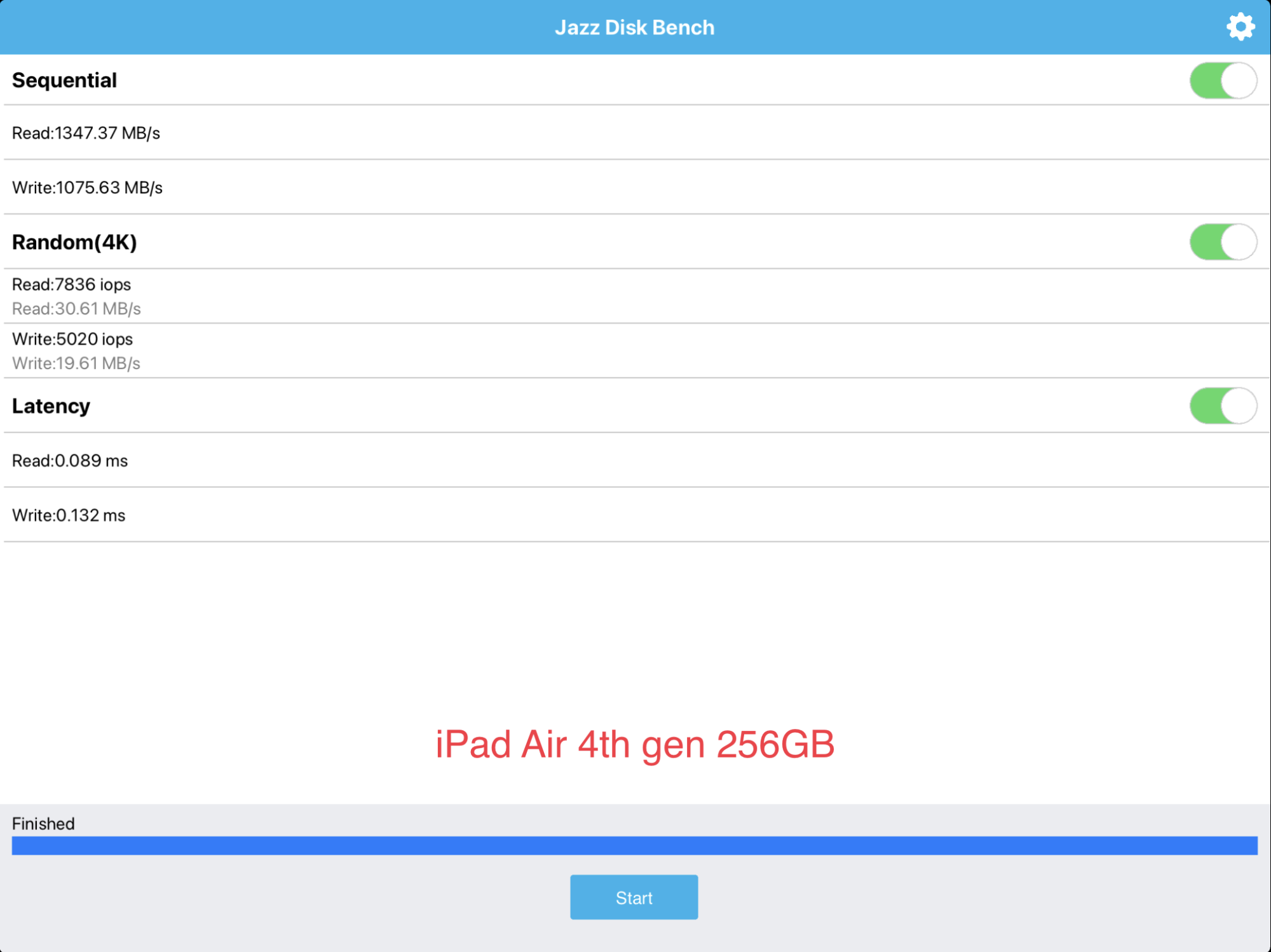Here are benchmarks for a 256GB Air 4 and 1TB 2020 Pro.