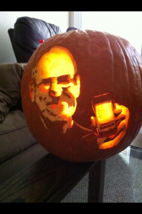Readers have sent in a number of festive Apple-themed pumpkins, including two that emulate Jonathan Mak's interpretation of the Apple logo and another pumpkin interpretation of Albert Watson's famous photograph that now graces the cover of Steve Jobs' biography.