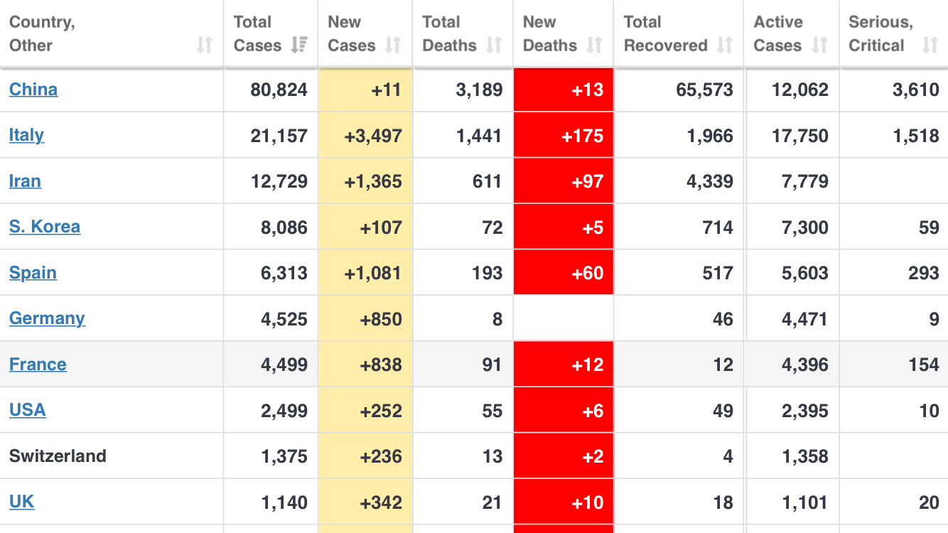 Re: S Korea, they’re still at the beginning. They’ve got a lot of active cases. Only 786 cases have reached resolution, with 72 of them having died. Of course that doesn’t mean there’s a 9% fatality rate, because most of the active cases will recover. But their current death rate has already edged up to 0.9%.