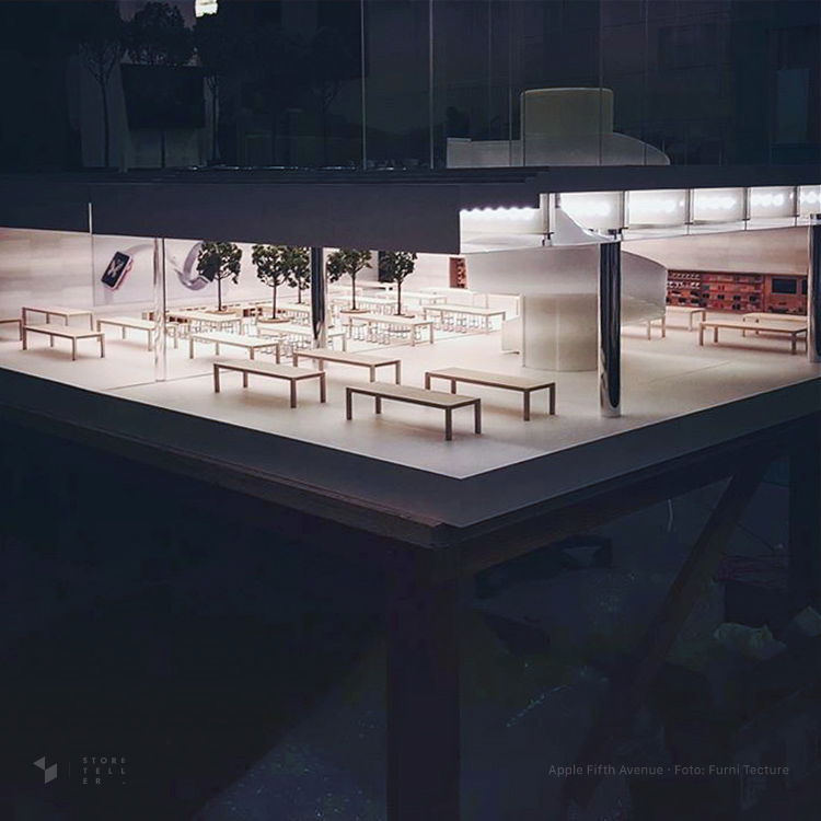 Maybe it's really only because the whole plaza will be rebuilt while adding several "light tubes" to get more daylight into the basement—for the trees as shown in photos of a supposed model of the upcoming store. But I like the idea of a new cube with one glass panel per side a lot.
