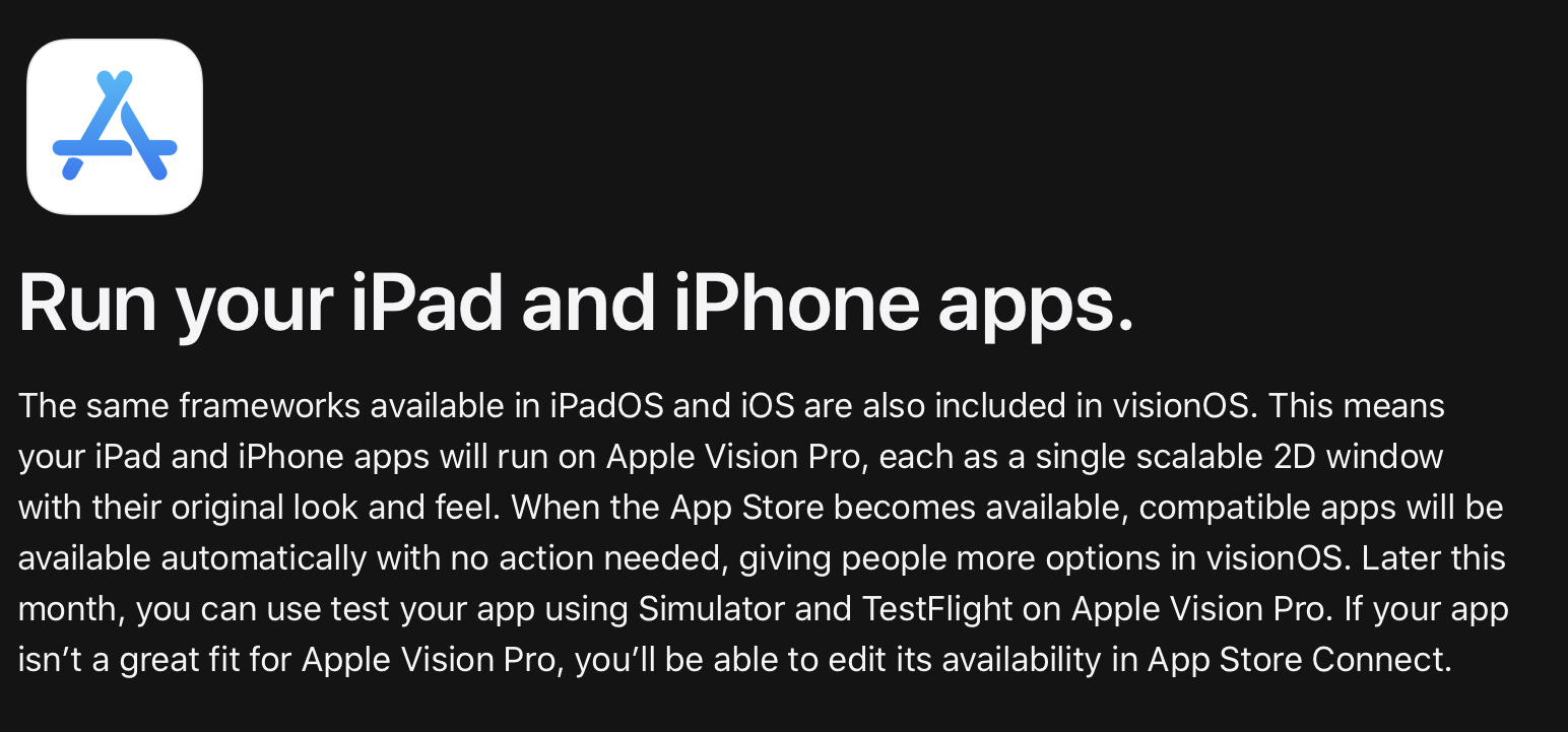 Apple's Vision Pro headset is the company's first new product category since the Apple Watch, and it is unlike any other Apple device. It runs an operating system called visionOS, and developers will need to create augmented and virtual reality apps specifically for the headset.