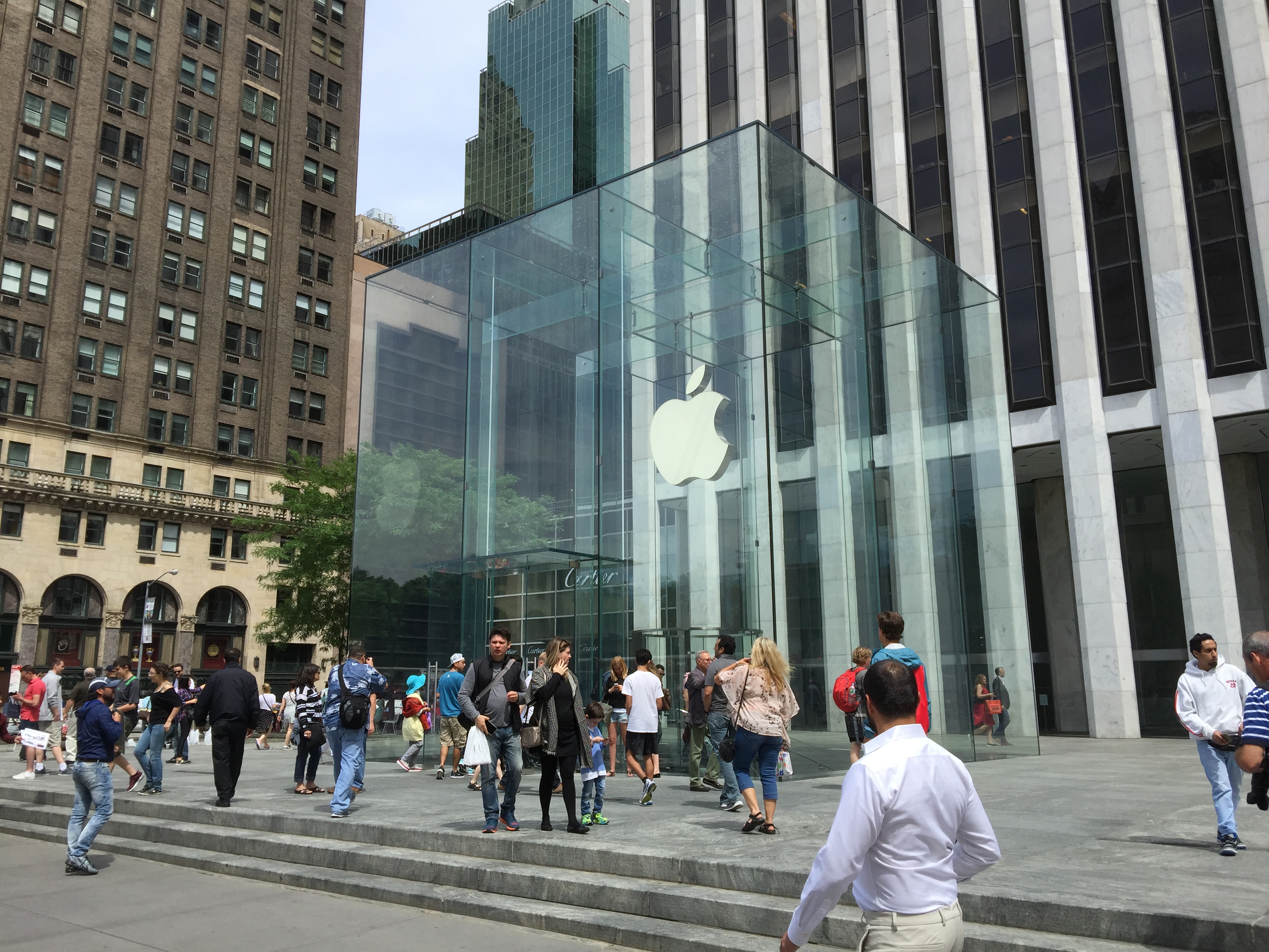 Apple's iconic Fifth Avenue store, left, and nearby FAO Schwarz store, far right (Flickr)