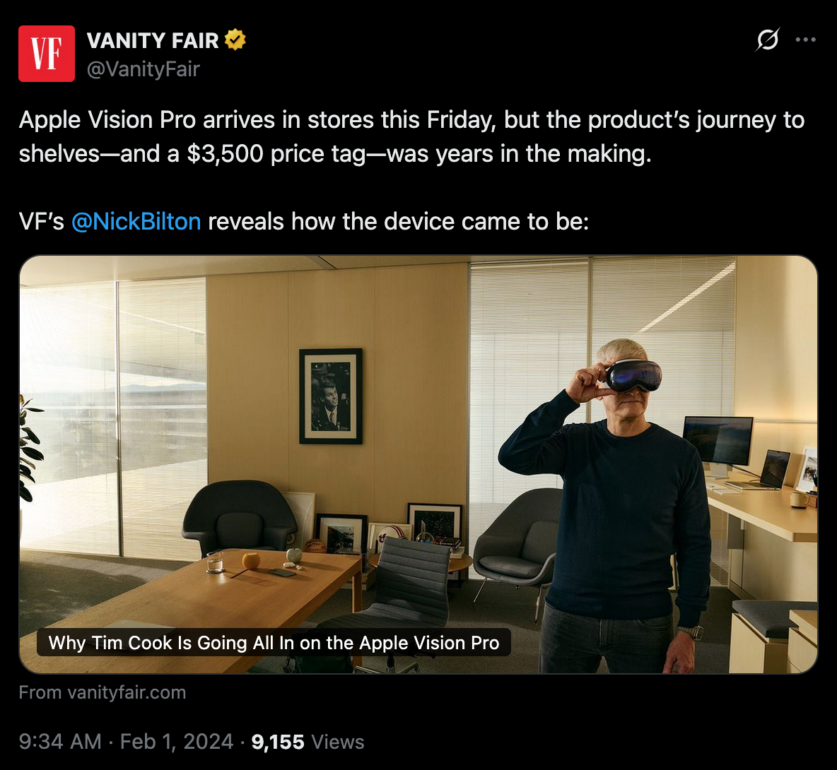 Marketing of the Visio Pro was problematic, purely because 1) until the Vision Pro, headsets = gaming, and Vision Pro was very deliberately not marketed as a gaming device and 2) there's the fundamental problem of headsets - it's very impressive technology, but for a lot of people, it doesn't really add anything significant over working with a big screen when sitting at a desk and just getting work done.