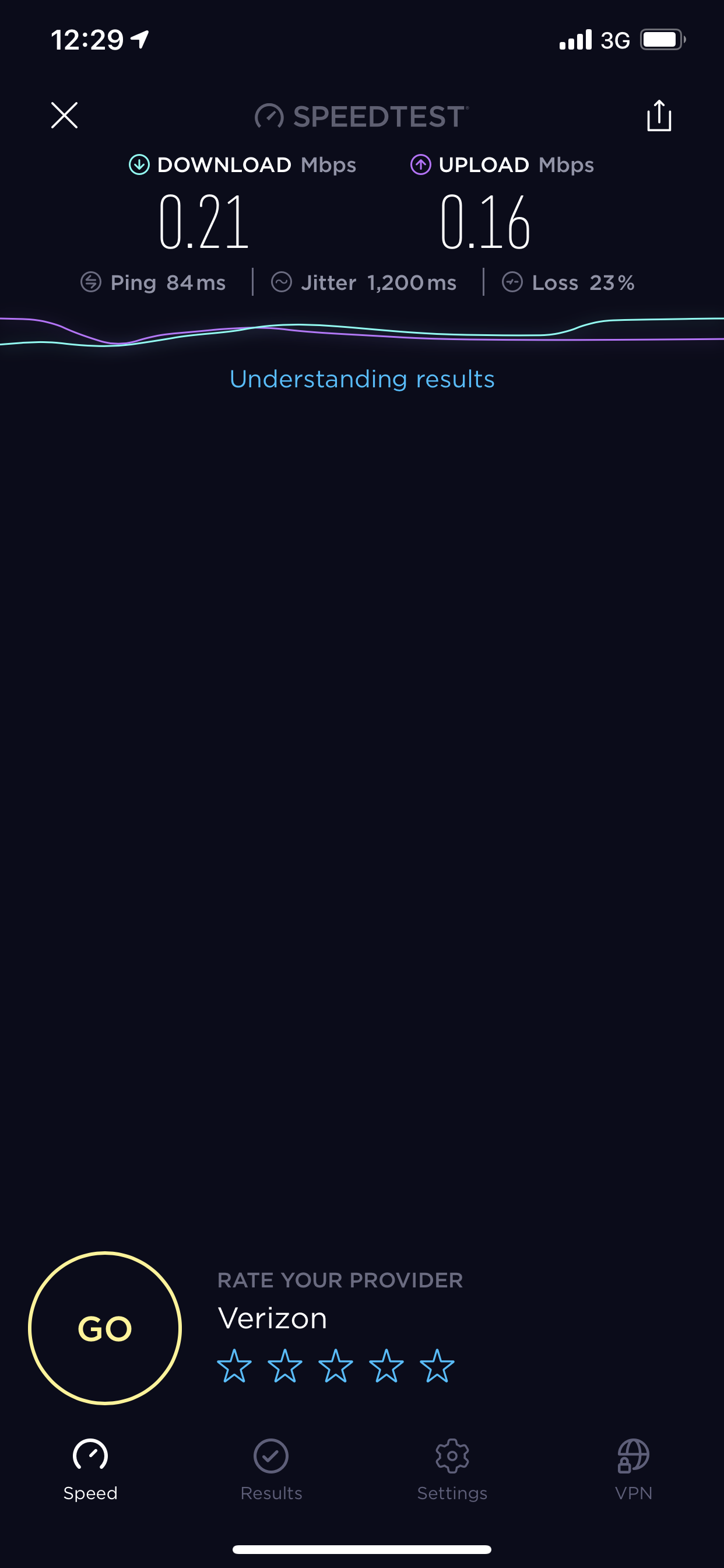 Here's a 'full bars' VZW 3G speed test I just did. The 3G network is a joke now.