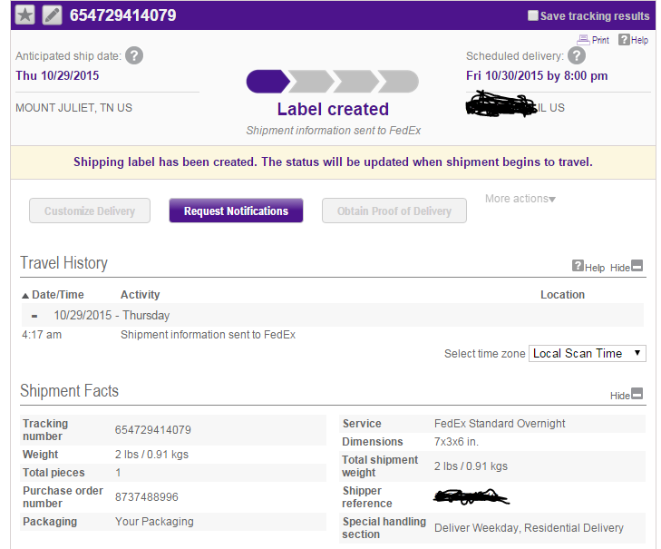 Mine shows PFS. Delivery Nov 2 to Nov 4th. Both fedex and UPS show nothing under track by reference. So I suspect we Canadians won't get ours till sometime next week.