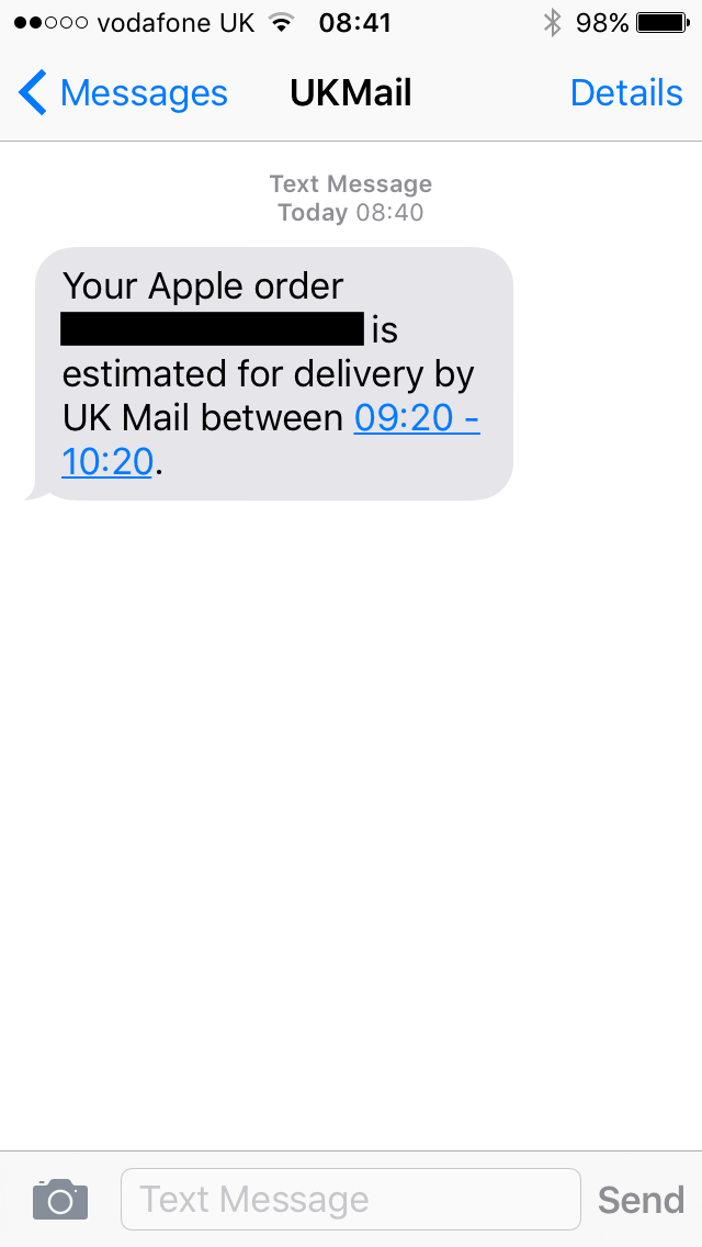 Similar scenario here. I think DPD don't update the delivery info until about 9AM for the 'out for delivery' status.Yay, picked up last night at 2330 and is on its way to DPD Edinburgh. DPD say estimated delivery 30th, Apple say 2nd. Let the refreshing begin..