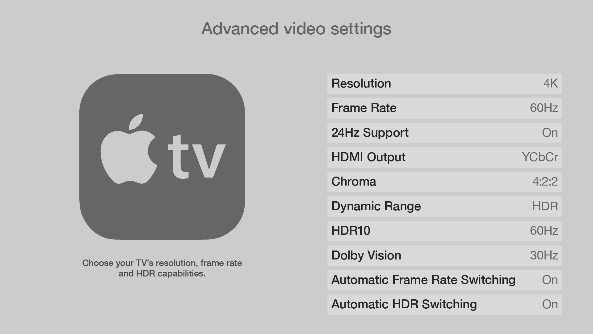 Apple really missed the game by forcing HDR mode ALL of the time. My Sony 940E goes into TORCH mode (brightness at MAX) when HDR content is detected. Apple TV 4K tells the TV that it is ALWAYS in HDR mode, regardless of what I'm watching. Therefore, SDR content (and the Apple TV menus) are WAY too bright.