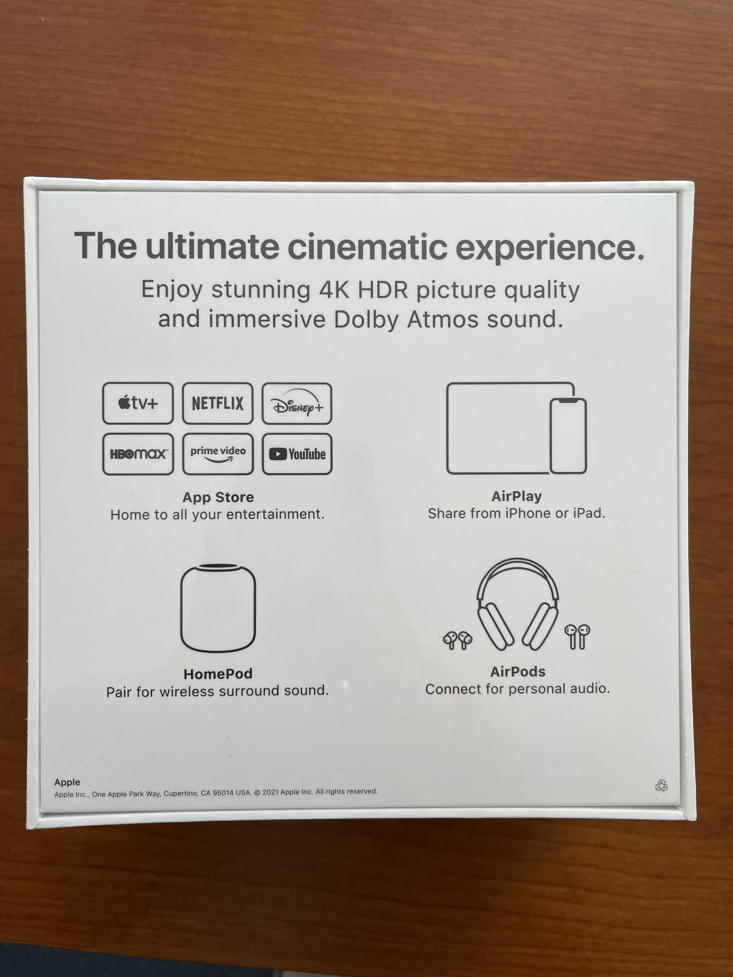 We know that AirTags were ready and waiting, for whatever reason, as evidenced by stickers on the packaging from 2019. I didn’t find anything like that in the TV packaging, but does this HomePod artwork suggest that the TV packaging was designed before the decision to discontinue the full size HomePods?