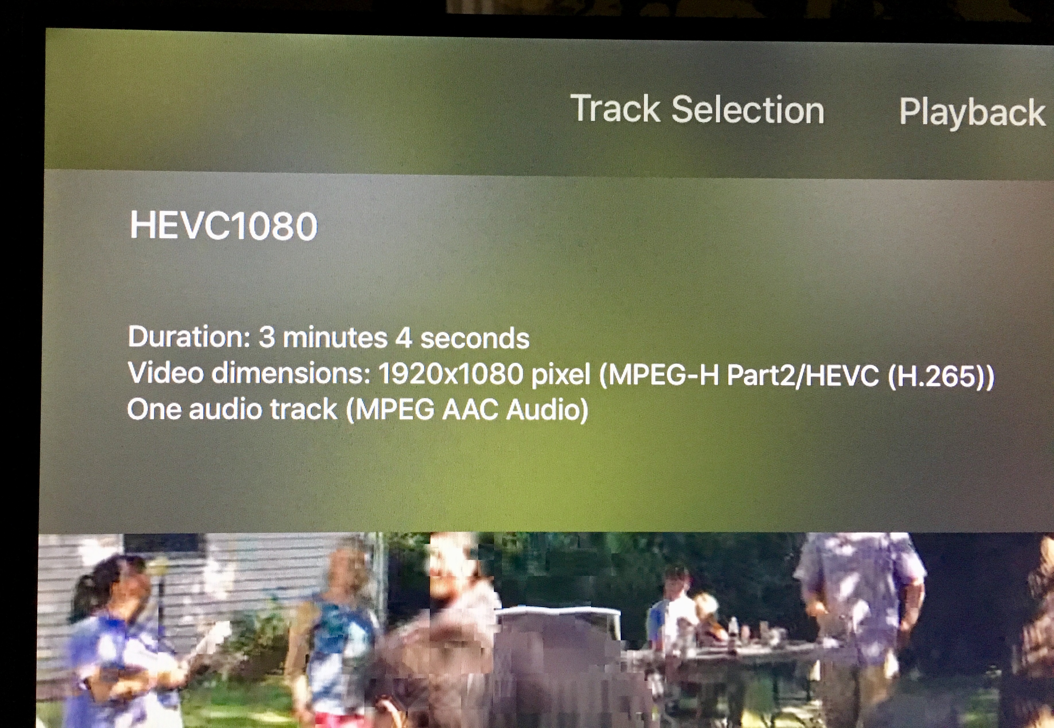 A video encoded using HEVC (Main profile too) can be made to playback smoothly on the AppleTV HD. I just grabbed a video from get together off my iPhone and ran it through HandBrake using x265. This is a HEVC 1080p60 played in VLC on the AppleTV HD. To that point my 2013 iMac encoded that 3 minute video in 5 minutes with the CPU.
